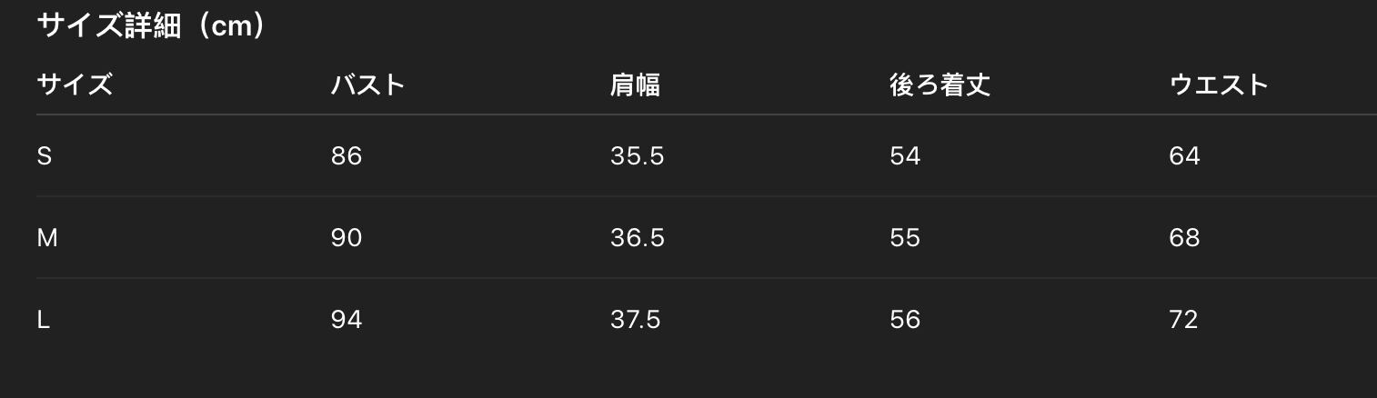 サイズ詳細は商品画像内のサイズ表をご確認ください。