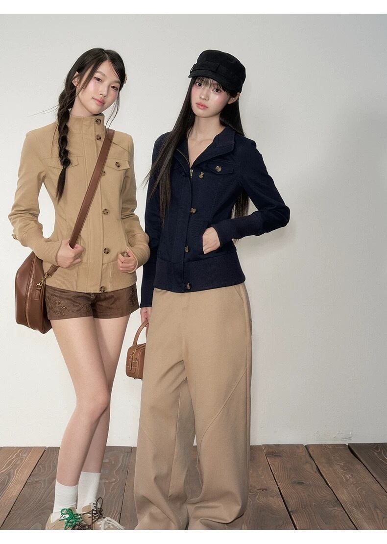 【Jacket】-ヴィンテージムード ショートジャケット-韓国風 着回し アウター ボタンデザイン